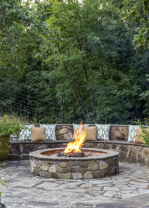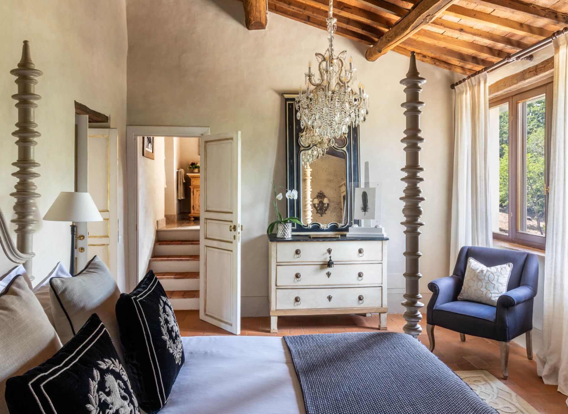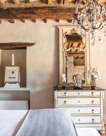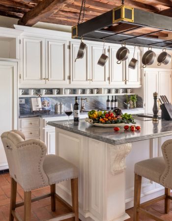 The Main House unfolds through light-filled rooms shaped by history and comfort. Medieval fireplaces, a Tuscan chef’s kitchen, and generous living spaces create a calm, welcoming atmosphere. En-suite bedrooms offer privacy, while a wisteria-draped terrace and fire pit extend life outdoors beneath open skies.