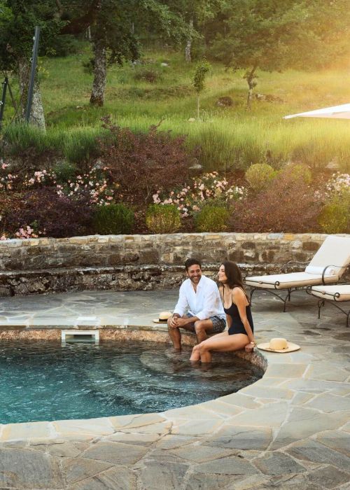 A heated saltwater pool, olive groves, and sweeping vineyard views create space for rest and play, from quiet swims and sunlit afternoons to evenings drawn together around the fire pit.
